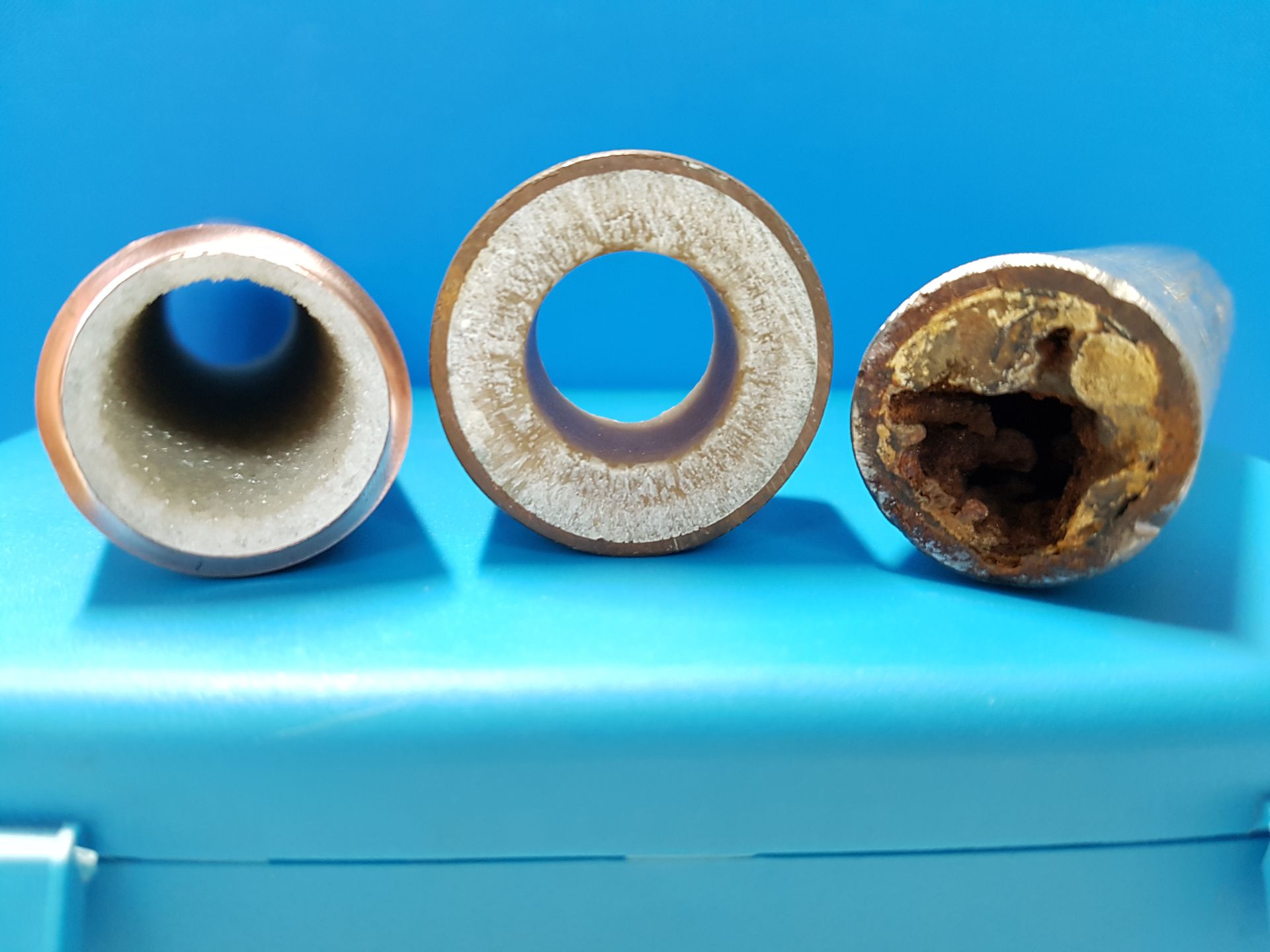 Le calcaire va peu à peu obstruer l’ensemble de la tuyauterie, particulièrement celle où passe l’eau chaude dont la température dépasse les 60°C. Dans un tuyau entartré, le débit de l’eau diminue fortement. Contrairement au calcaire, la rouille finit par perforer la tuyauterie. Les fuites apparaissent et causent parfois des dégâts importants.
